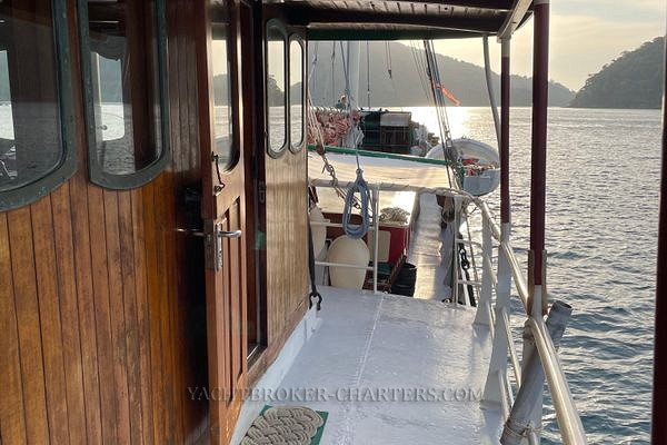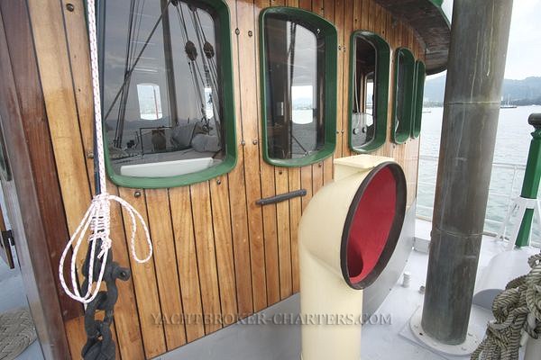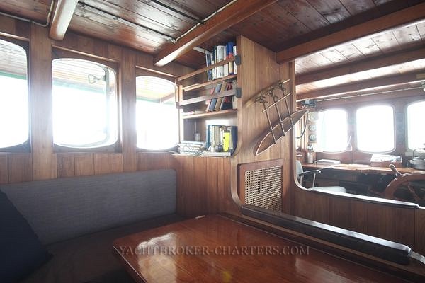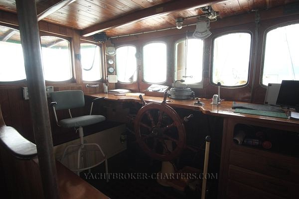 SINDBAD is a beautiful old piece of the past. Solidly and exquisitely built by craftsmen long gone. She must be seen to be appreciated., Her wheelhouse is solid teak with 10 bronze 2ft x 2 ft ports all around; the wheelhouse exterior is 2" mahogany planking. The side decks and the large aft area are covered and a circular table and can seat six for dinner in a most romantic setting. She is an ideal home for a family to cruise the world or could be easily converted for charter, diving, salvage etc etc..