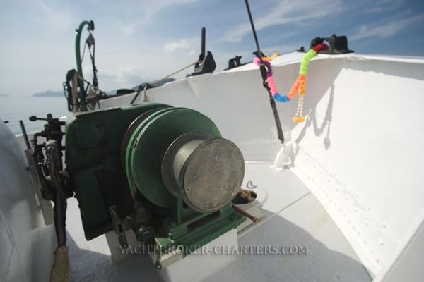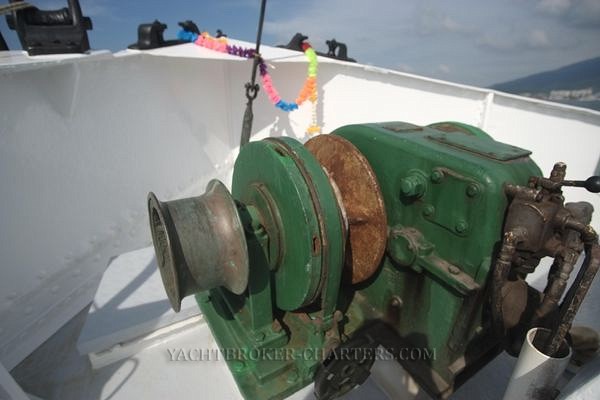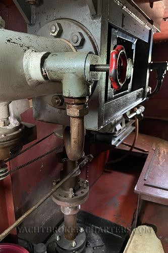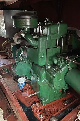 Of course the heart of this ship is the 8L3B Gardner, which has operated day in and day out for successive owners and has never given an ounce of trouble. It's never been opened and has never had any need for replacement parts or mechanics. After two circumnavigations and countless other voyages the engine does not even smoke! It burns an honest 2 litres per mile at 6 to 7 knots. This engine has never broken down and with the superb hydraulics aboard it is the easiest vessel to operate.