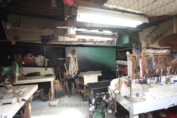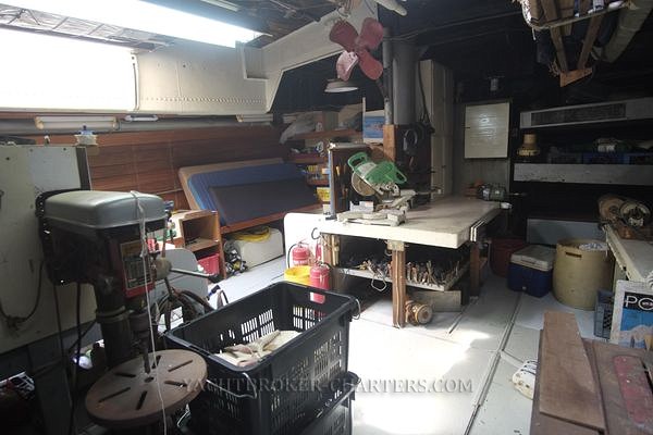 The hold is presently used as a workshop and has a great deal of spare parts, tools, power tools and benches.