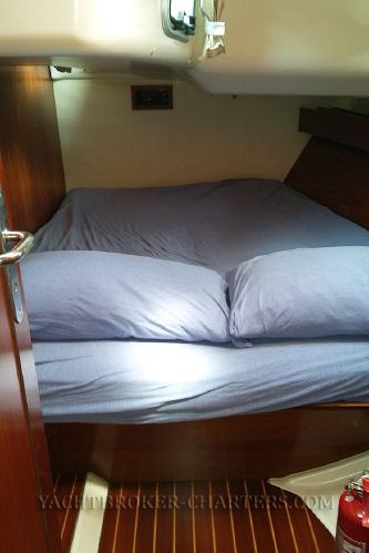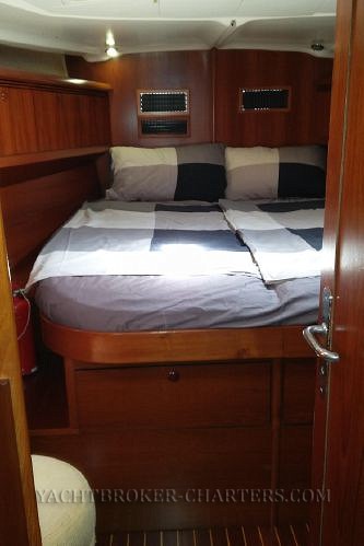The two doubles aft are a good design with good standing space at the head of each berth. These cabins share the day bathroom opposite the nav station. All cabins have 12VDC outlets plus USB outlets.