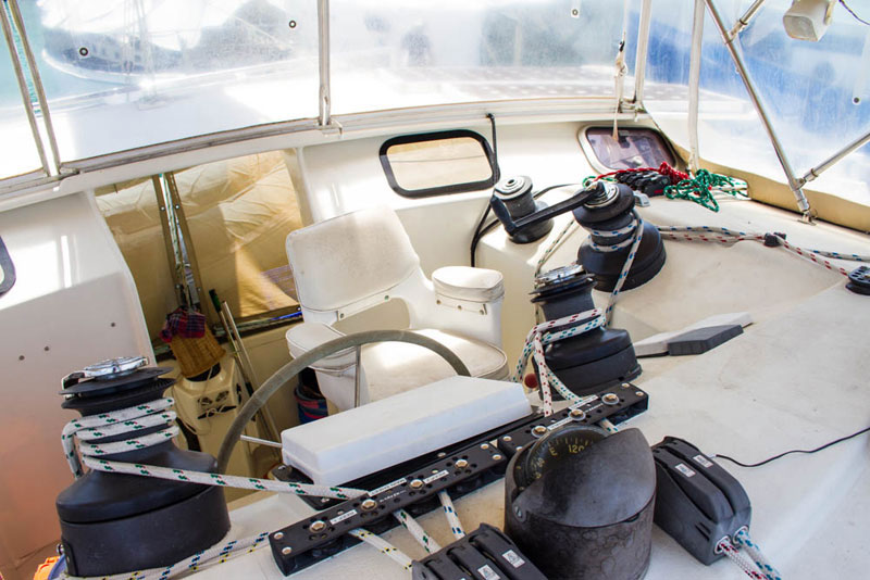 The flying bridge offers unparalleled 360 degree visibility and is protected with a strong bimini and dodger. All of the sheets and main lines come back to the cockpit allowing for easy and safe manoeuvring of the boat when shorthanded or in heavy weather conditions.