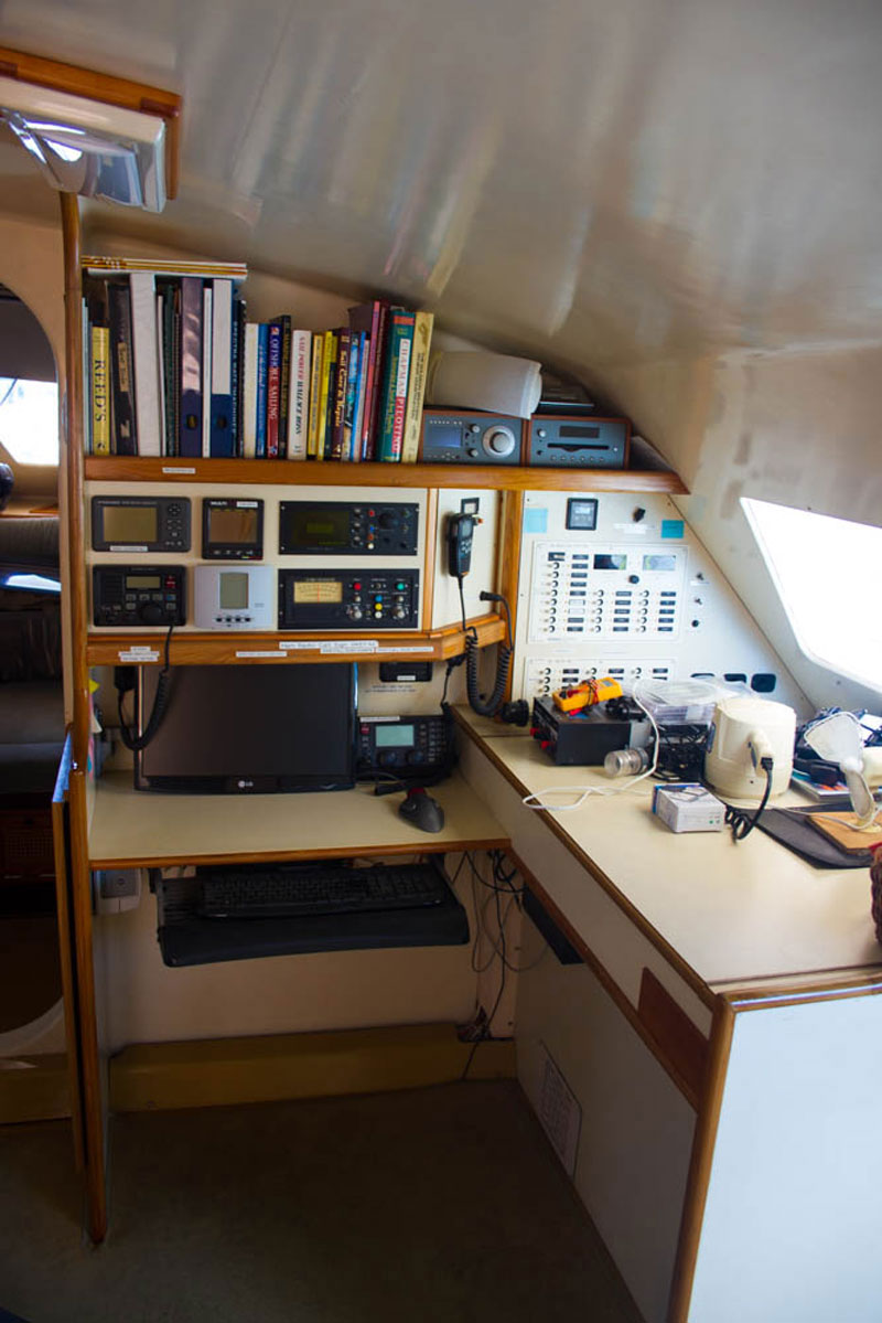 The nav station is an impressive command centre with multiple GPS, VHF, AIS and autopilot systems for safety and redundancy as well as a wifi network installed.