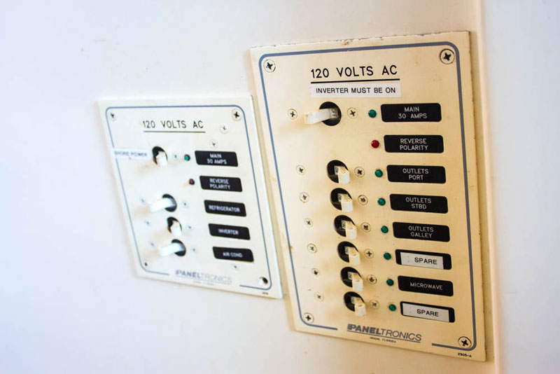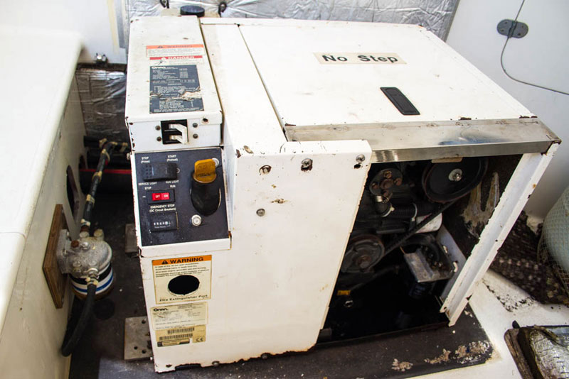 The boat has both 220 VAC and 110VAC systems with shore power cable and inlet. There is a 220/110 portable step down transformer for connecting to 220v shorepower. A Kubota diesel generator with removable cover is installed. It features with a 75amp 24v alternator and can be started and controlled from the galley.