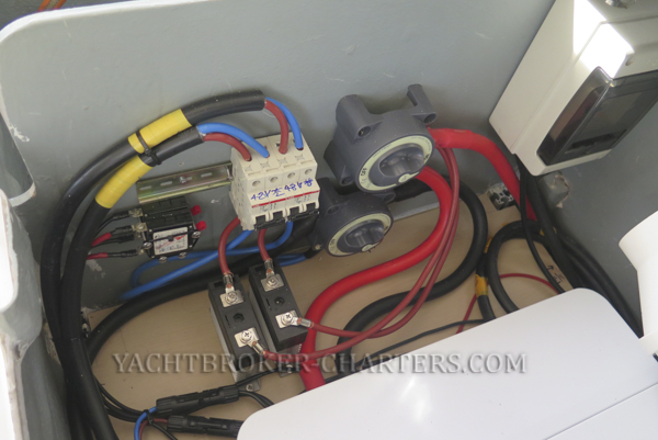 - The yacht's AC system is 230VAC, shore power inlet and cabin outlets. Victron inverter 3000W.