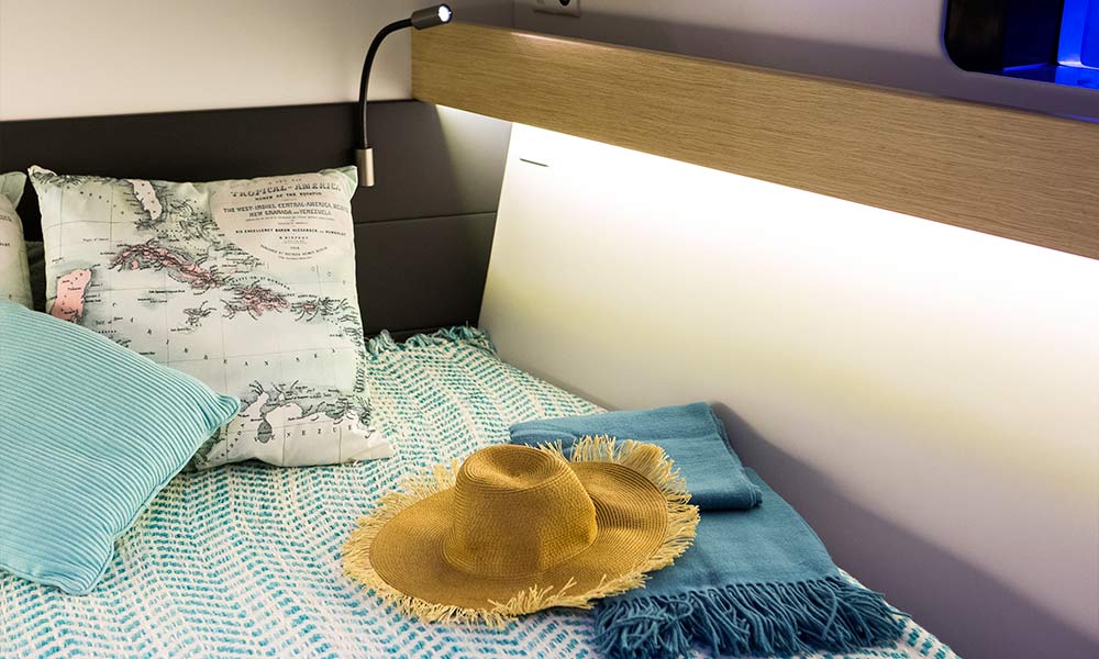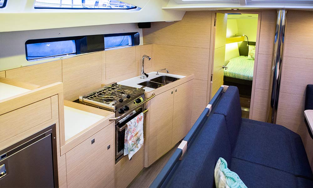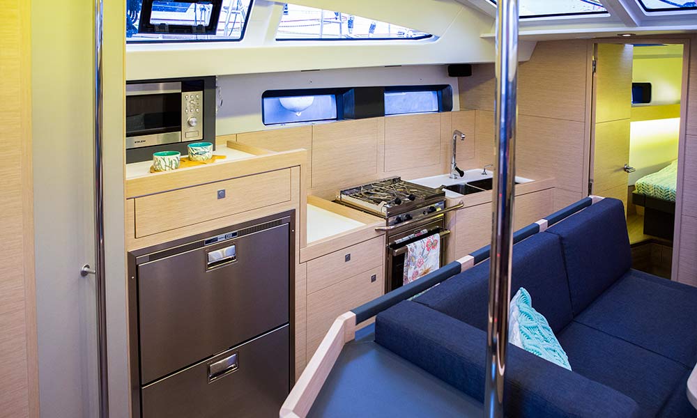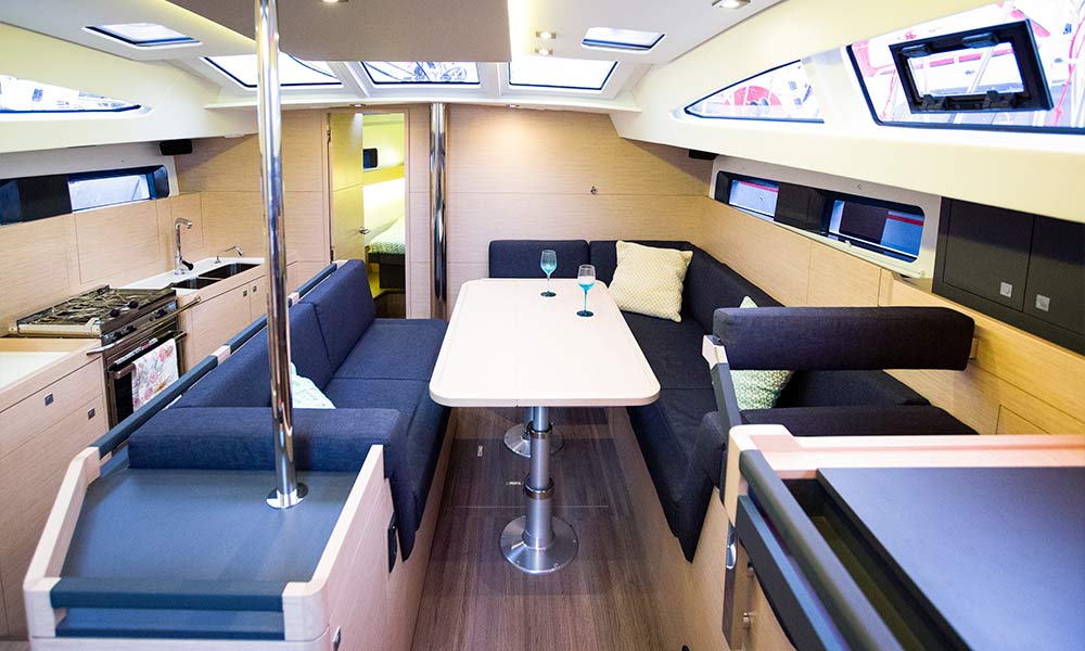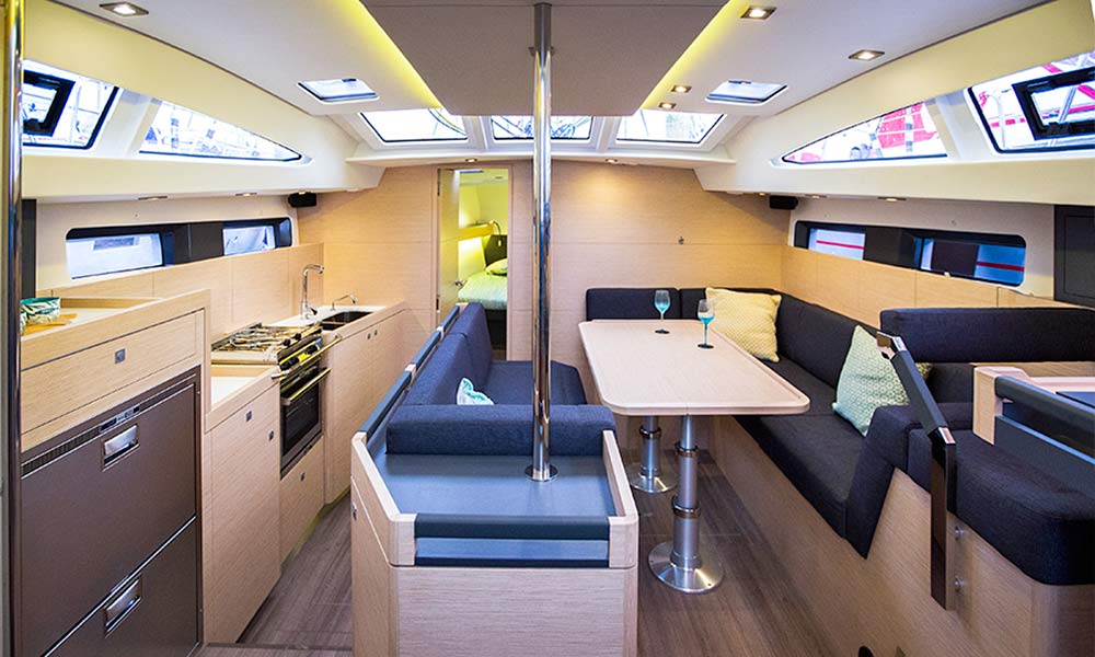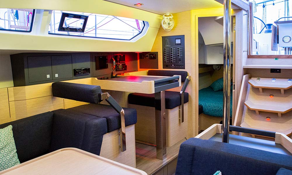 Inside the motto is: "Let the light in!”. The large overhead and side panels of the coachroof not only flood the saloon, galley and chart table with light, they also make it possible to monitor what is happening outside, both pleasant and reassuring.