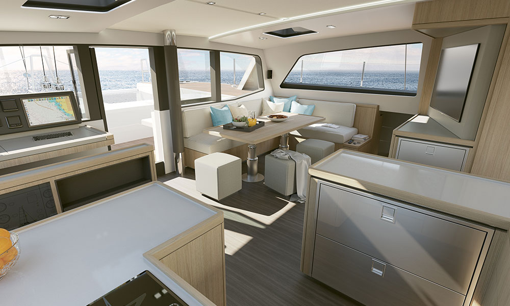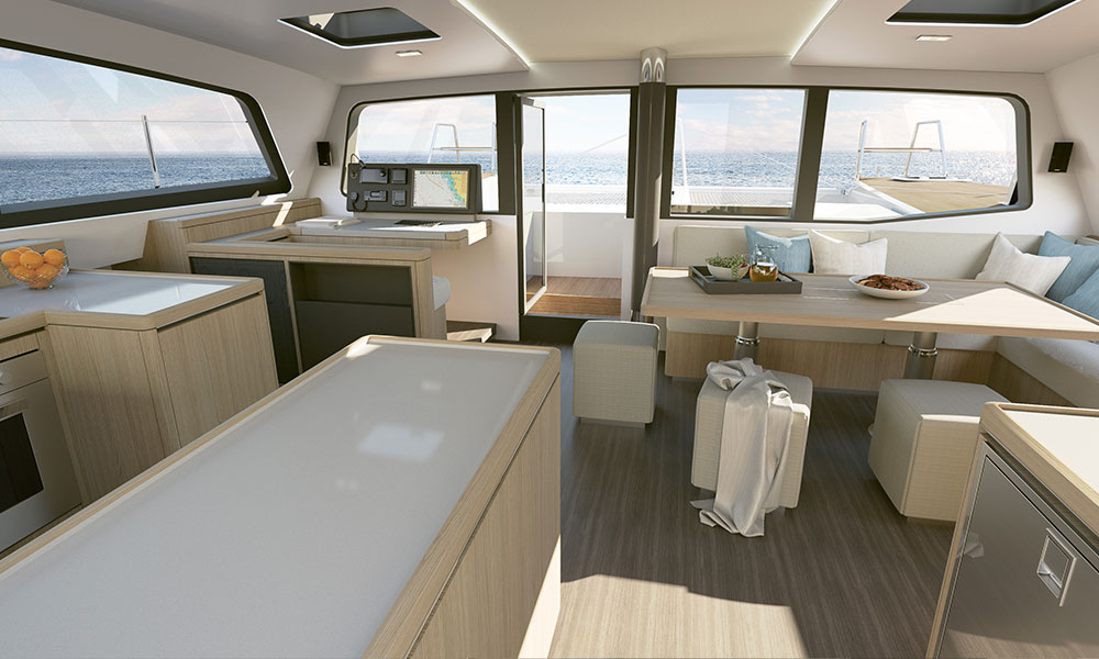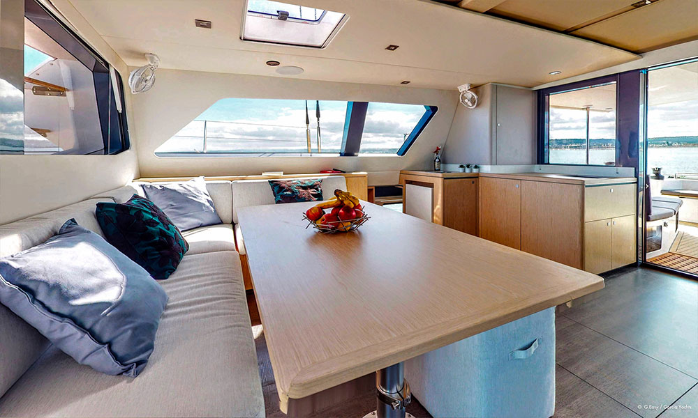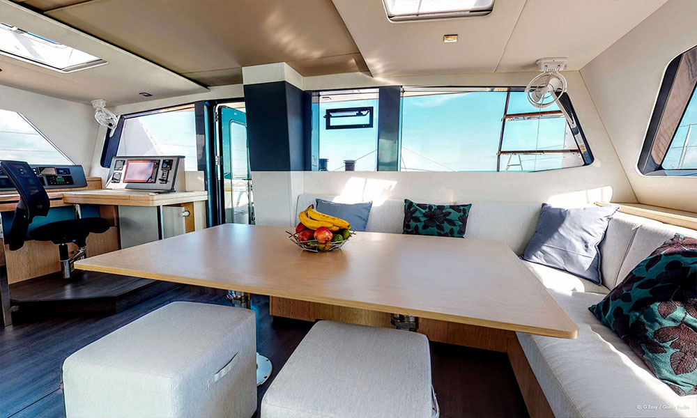Due to Darnet Design, the interior design of the Explocat 52 offers all the functional advantages of a catamaran on an exploration yacht, with a great panoramic view from every part of the saloon.