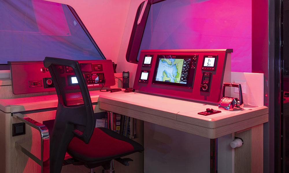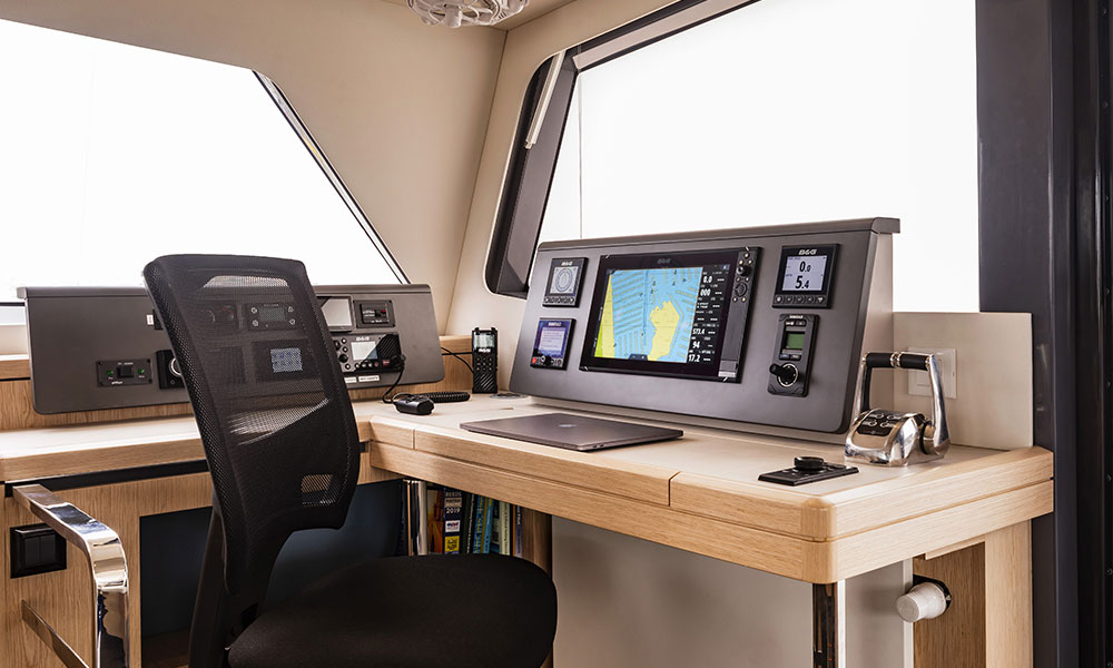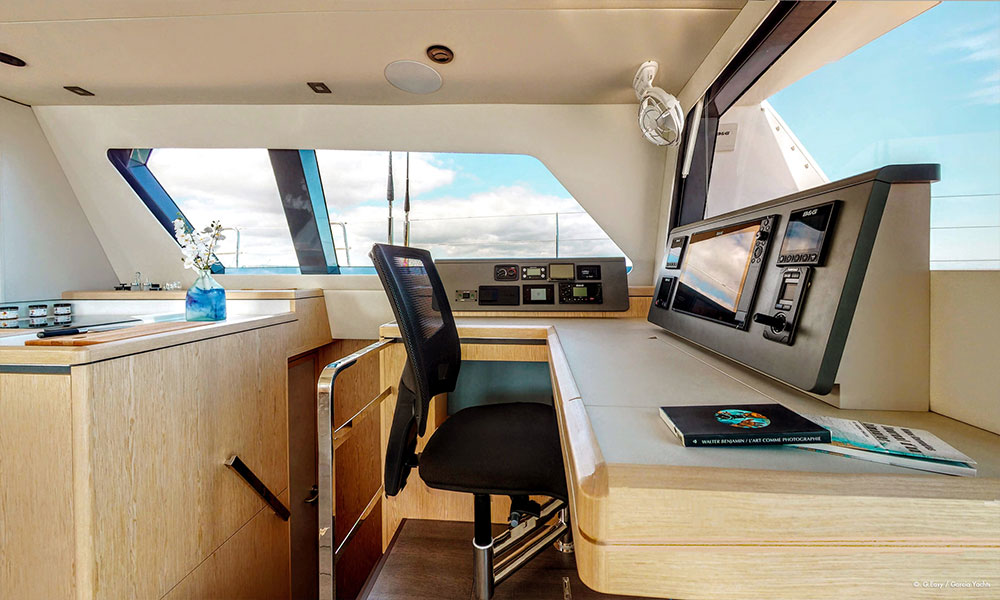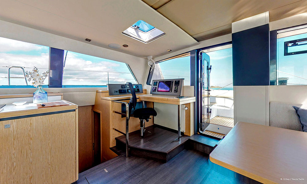 From the interior helm station, you will of course enjoy the magnificent environment around you, keep watch, and be able to maintain your course on your Explocat 52, nicely warm and dry, whatever the weather may be doing.