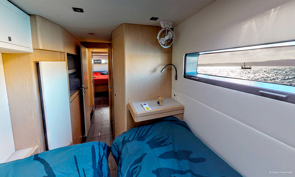 And like the carrying capacity, the water or fuel tanks, the energy sources have also been adapted to meet the most far-off sailing projects, the Explocat 52 is THE catamaran setting new standards for unlimited cruising.
